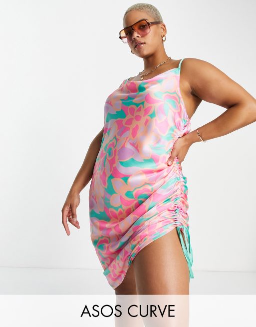 Asos Design Curve Ruched Slip Midi Beach Dress In Kaleidoscope Print Asos